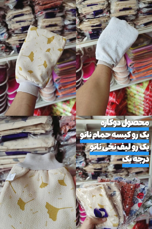 کیسه حمام نانو (دورویه) جادویی کیفیت عالی یک طرف کیسه و یک طرف لیف مدل ترکی